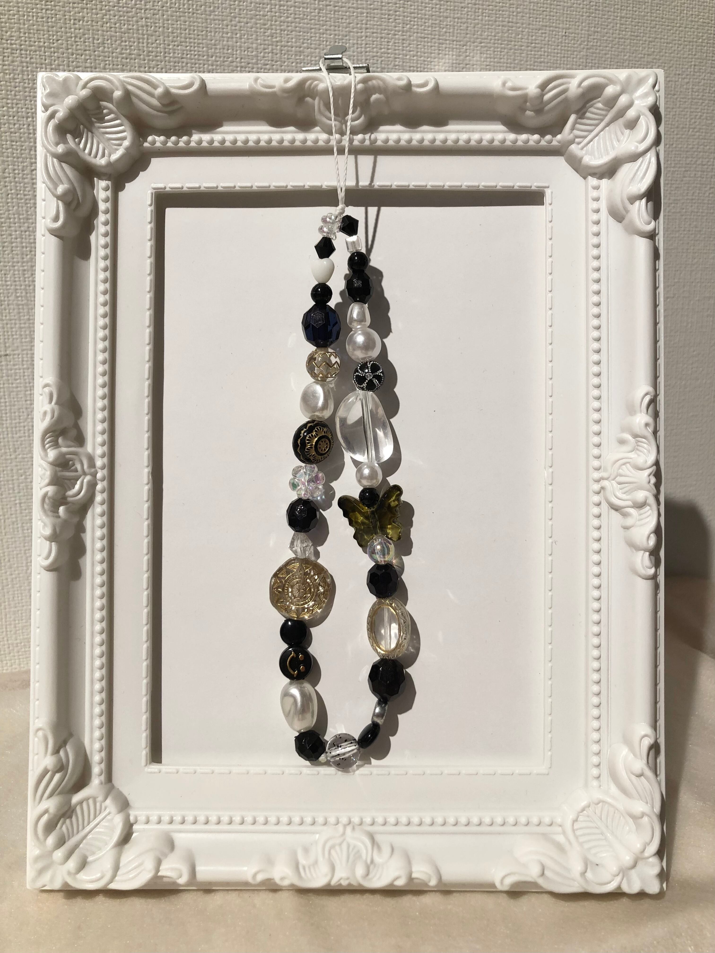 人気のクリアビーズ、ブラックビーズを使用し、アクセントに大きめのバタフライで大人っぽく仕上げました♡