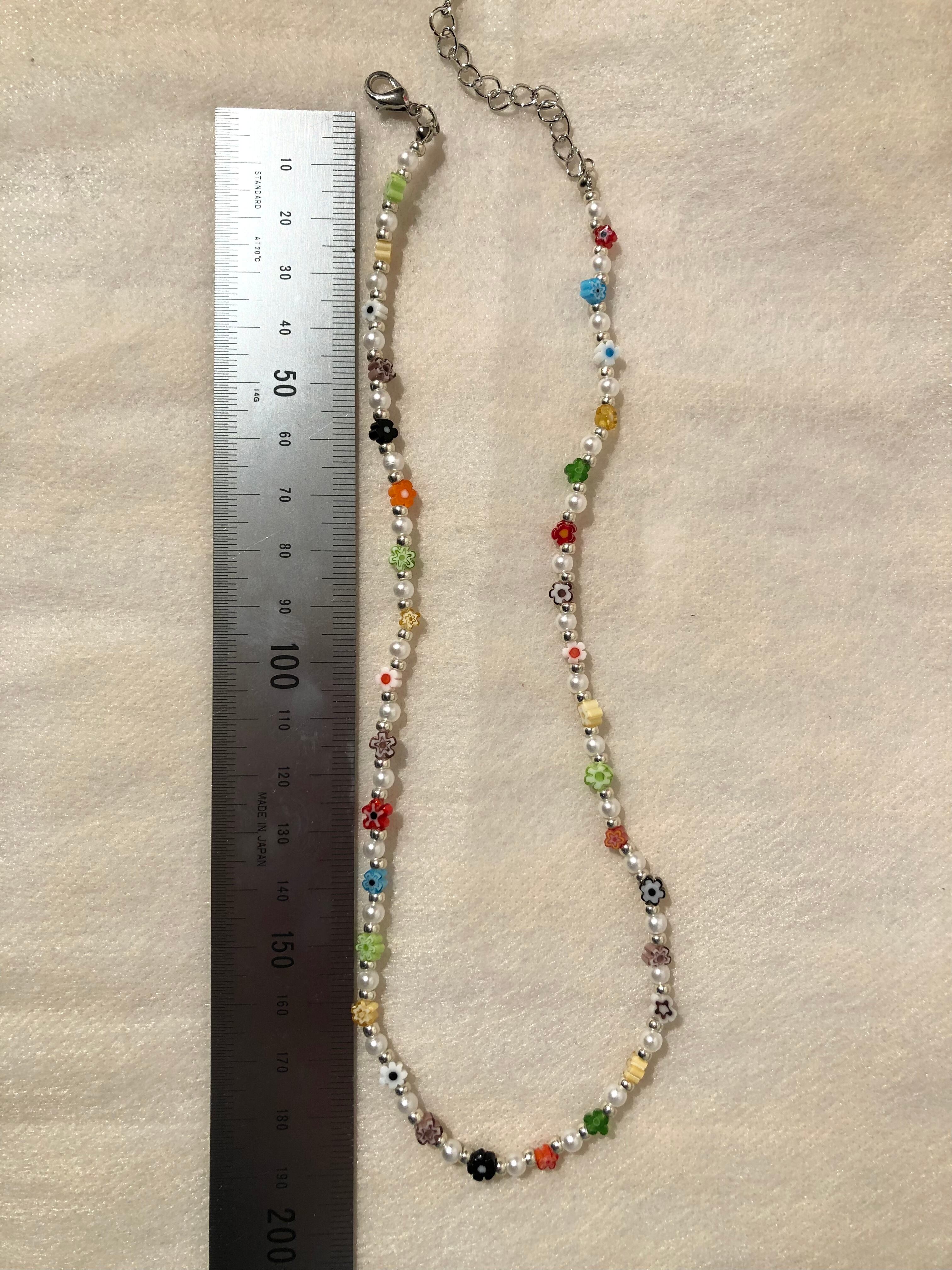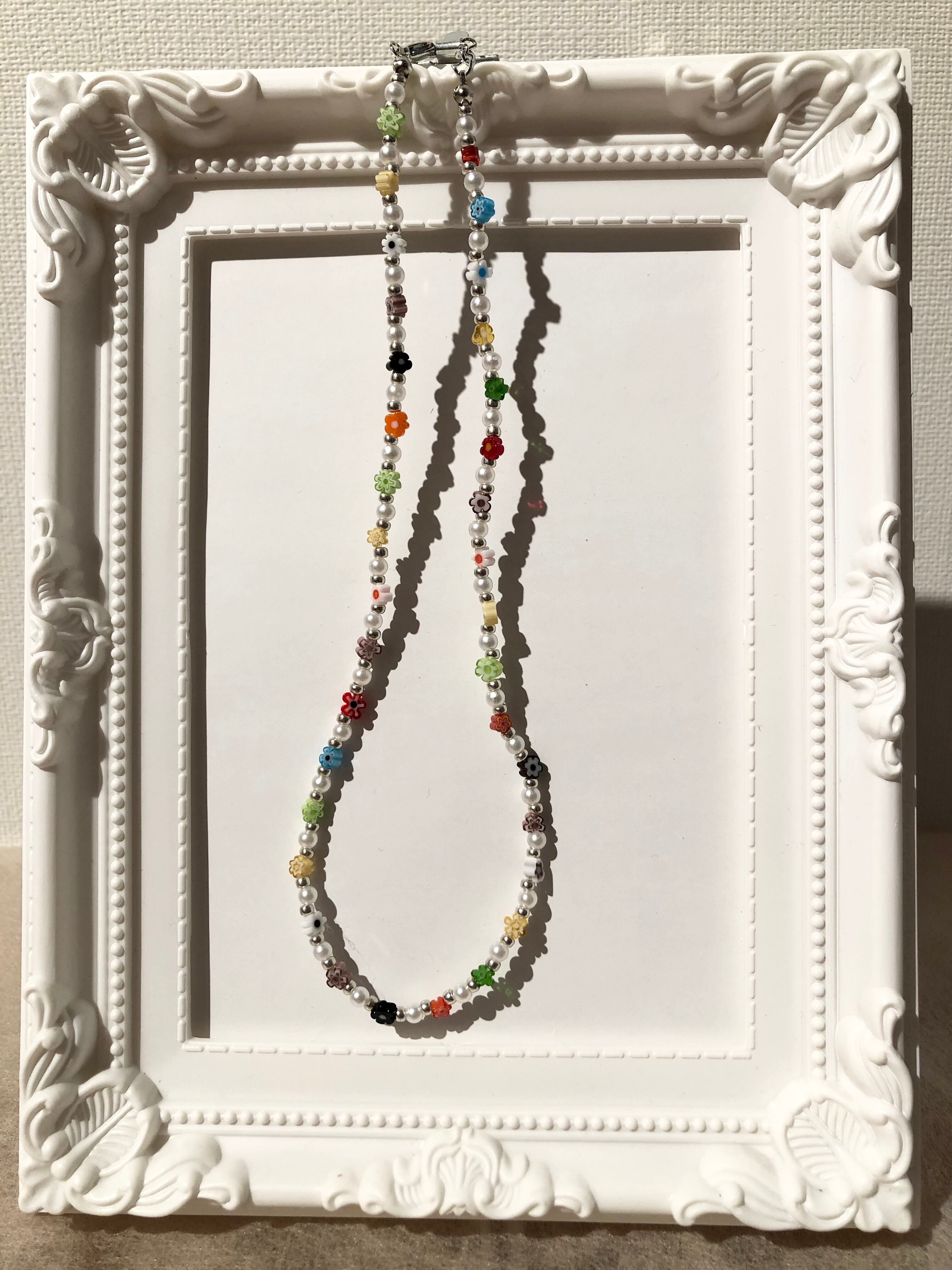 人気のミルフィオリガラスビーズネックレスです☆     ミッレフィオーリプチフラワー約4㎜