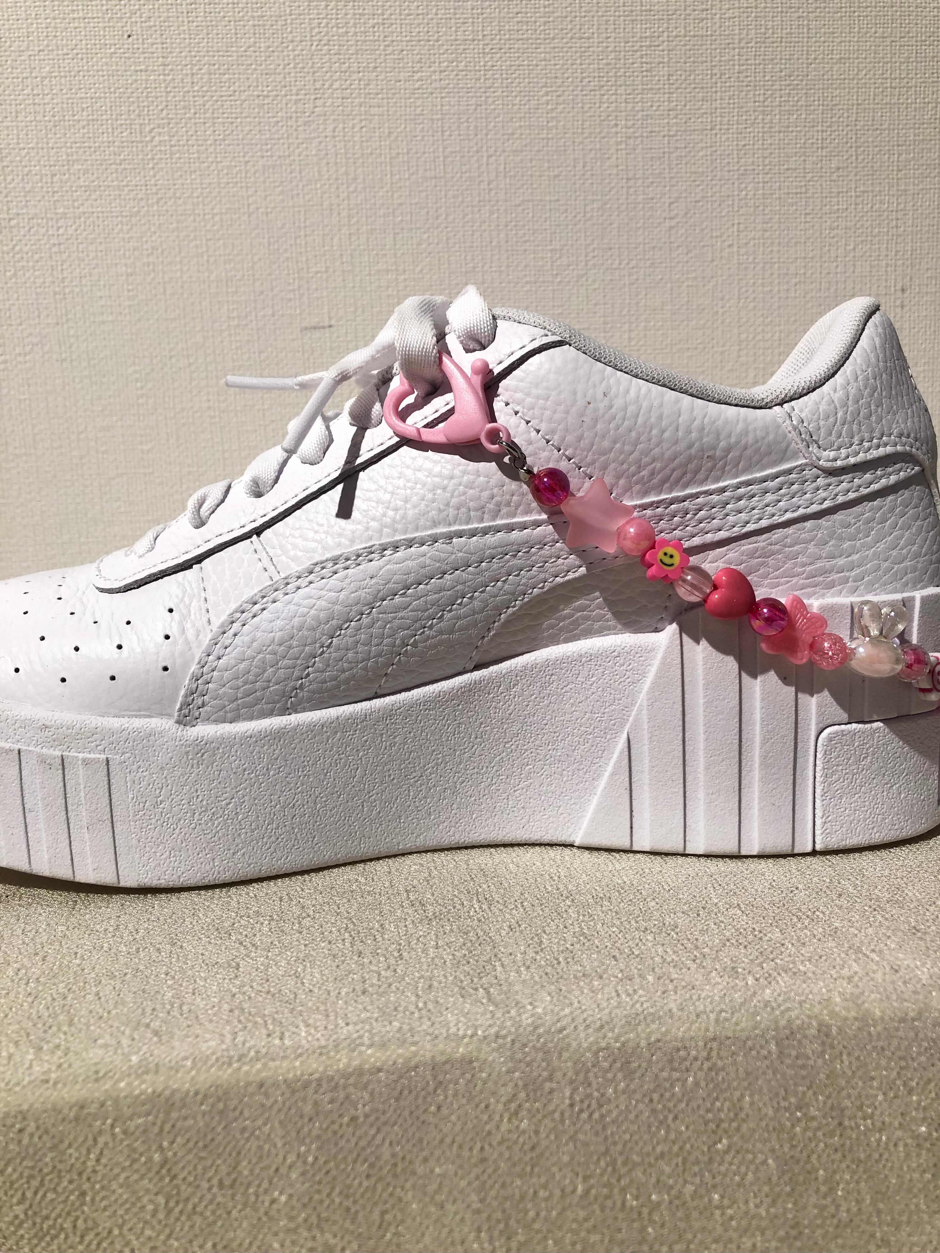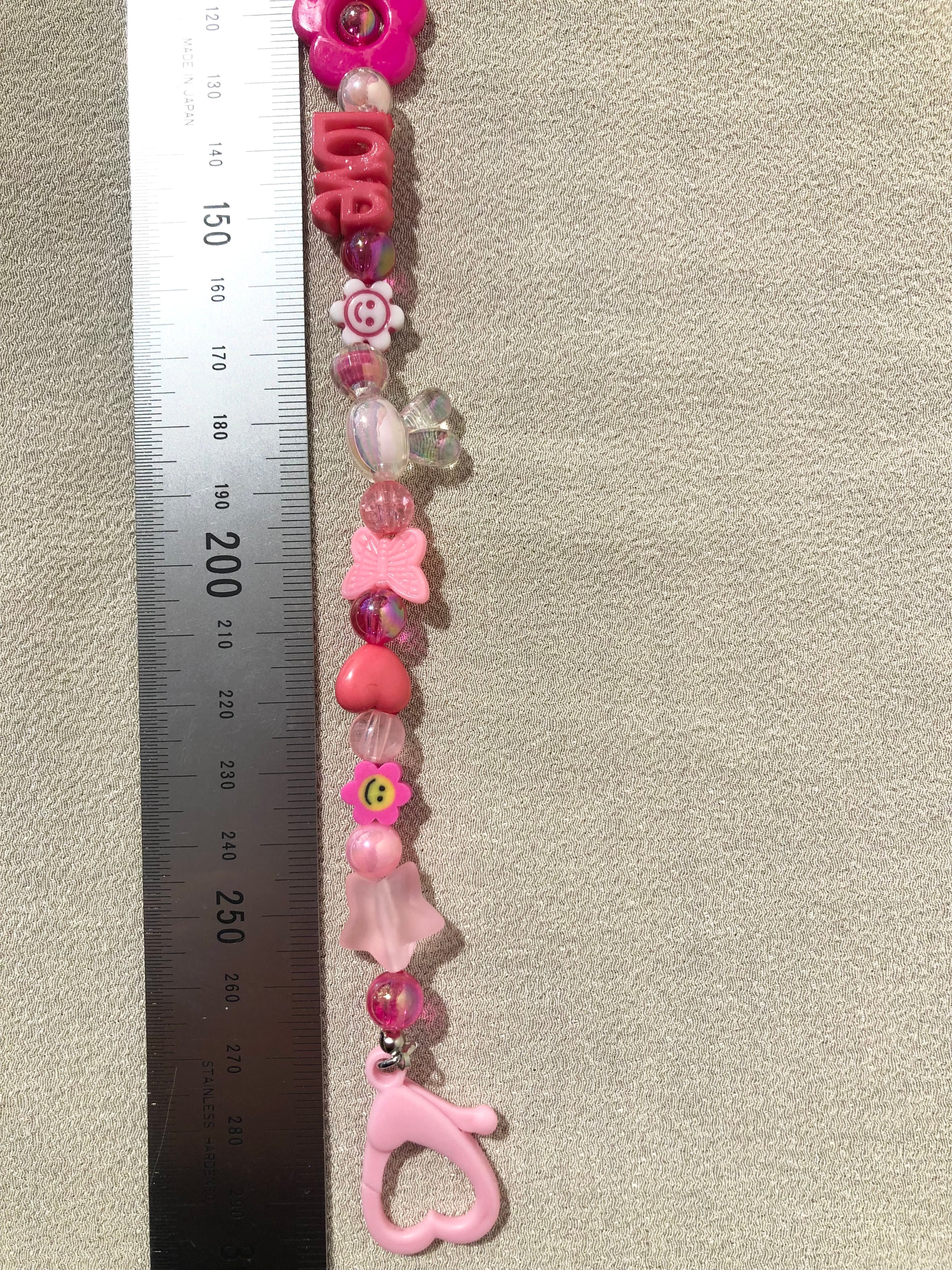 ポップな色のピンクビーズを使い、止め部分もポップさを出しました♡ カラフルな色使いのteensコーデにピッタリ☆