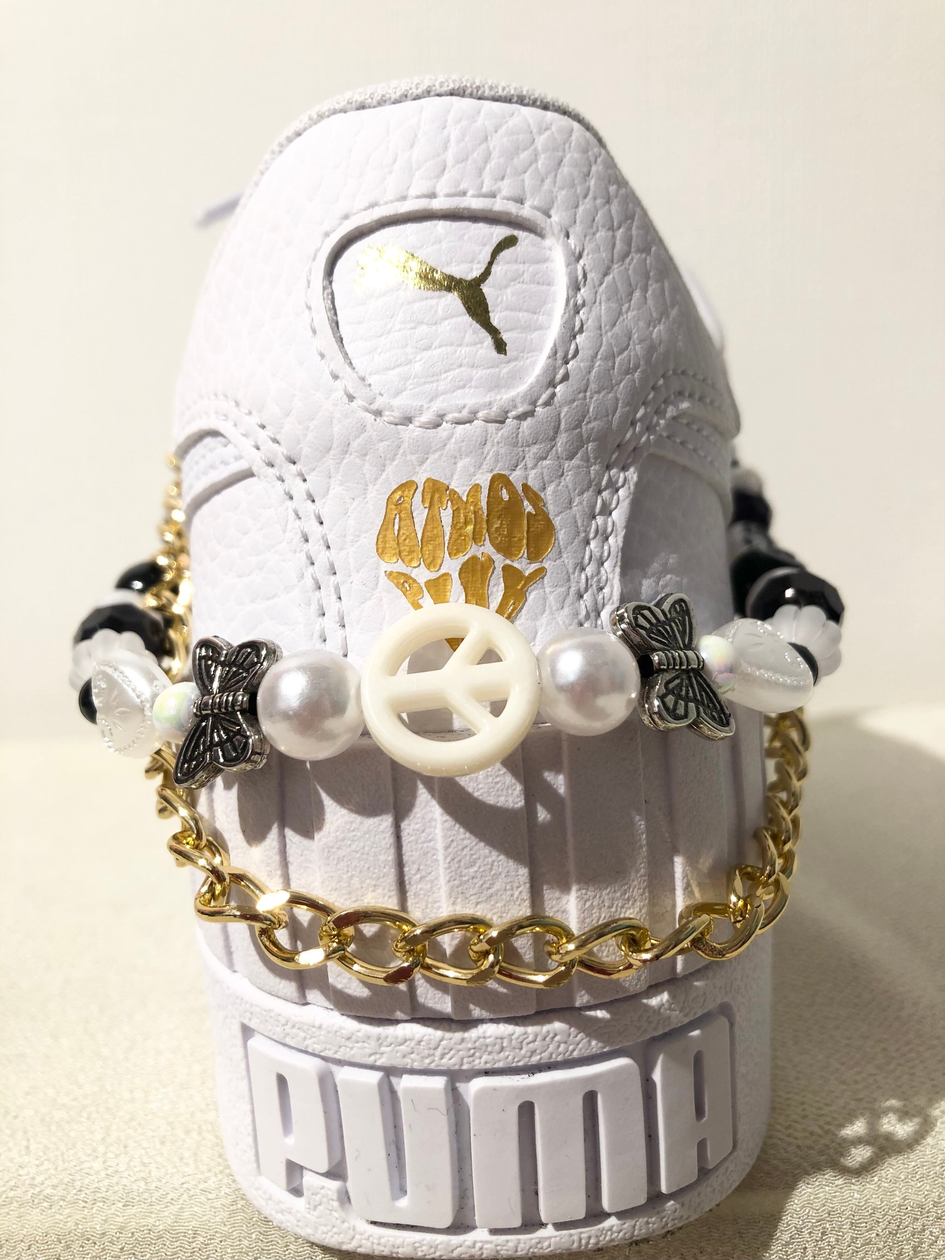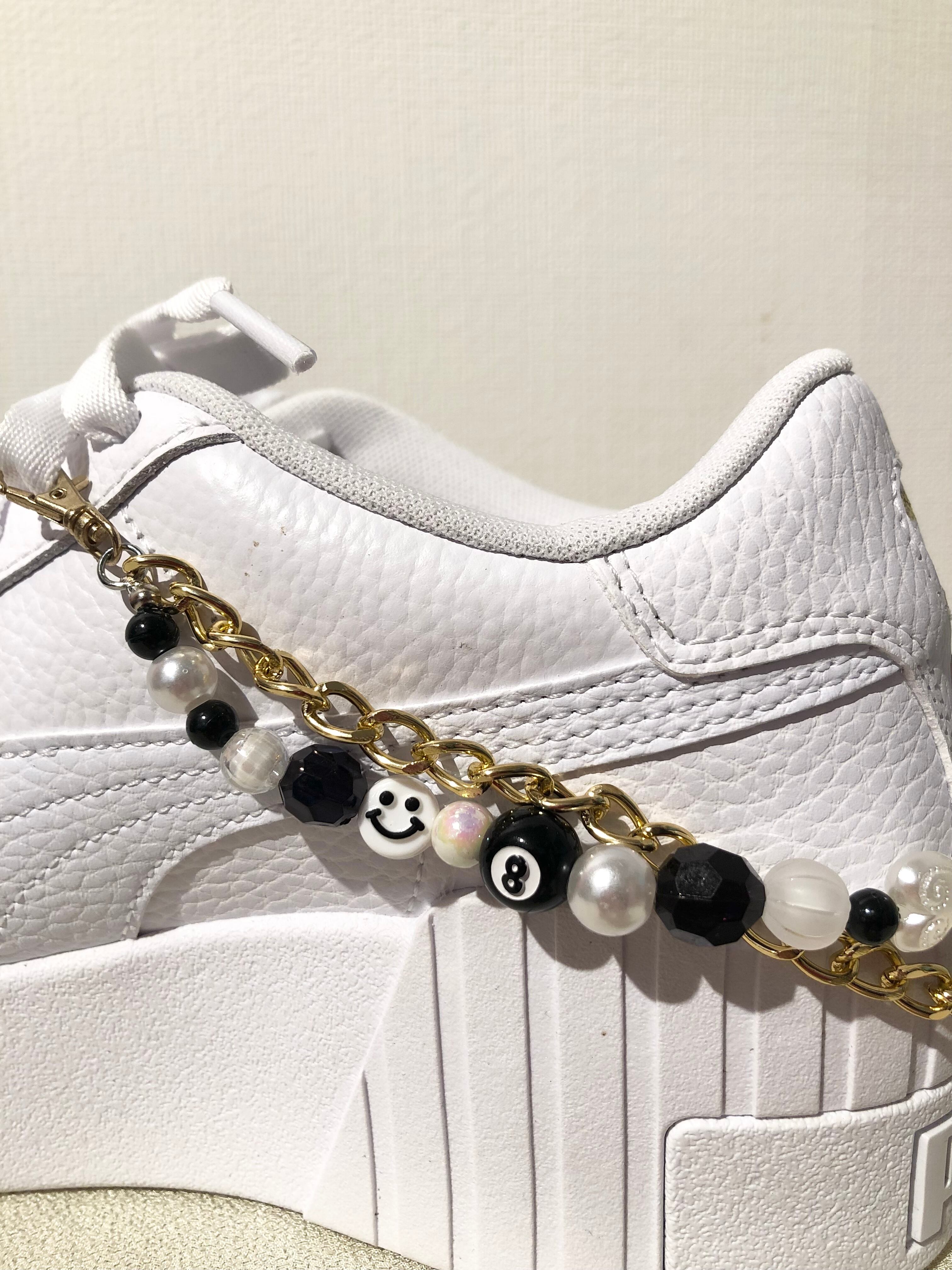 ブラックビーズ、パールビーズをベースに人気のビリヤード8番玉を使い、仕上げに、太めのゴールドチェーンで、ゴージャス感をアップしました☆