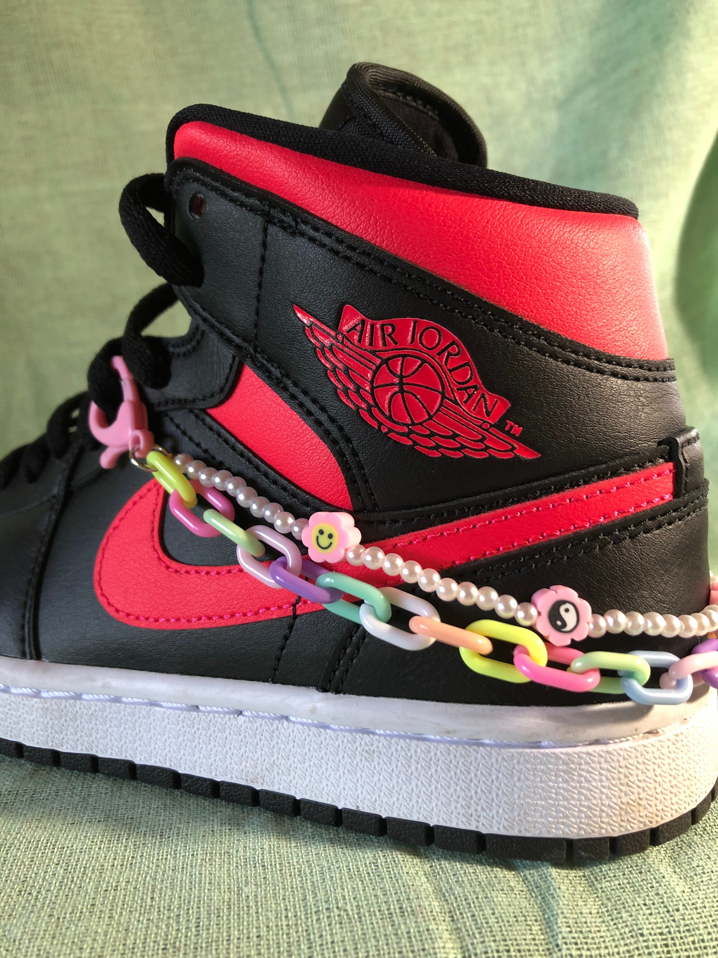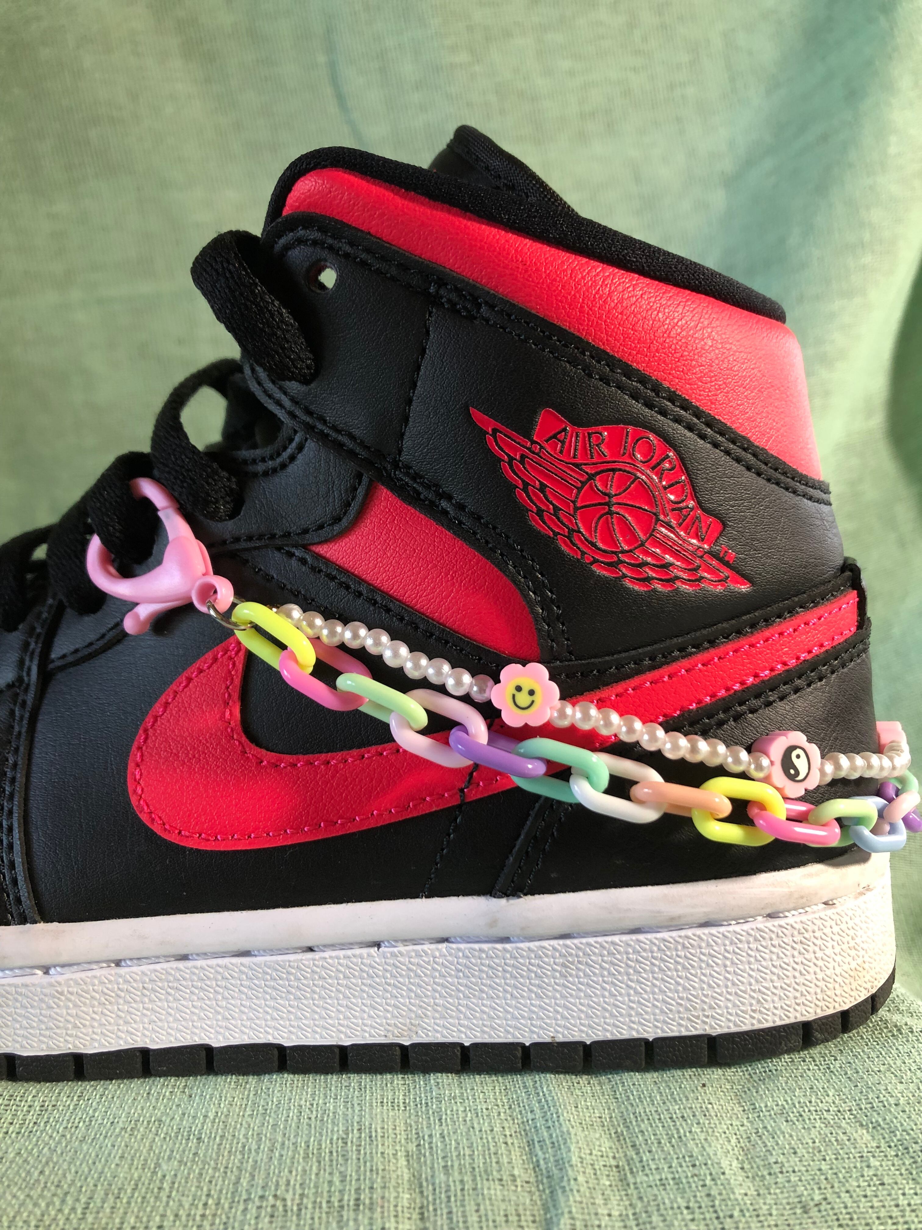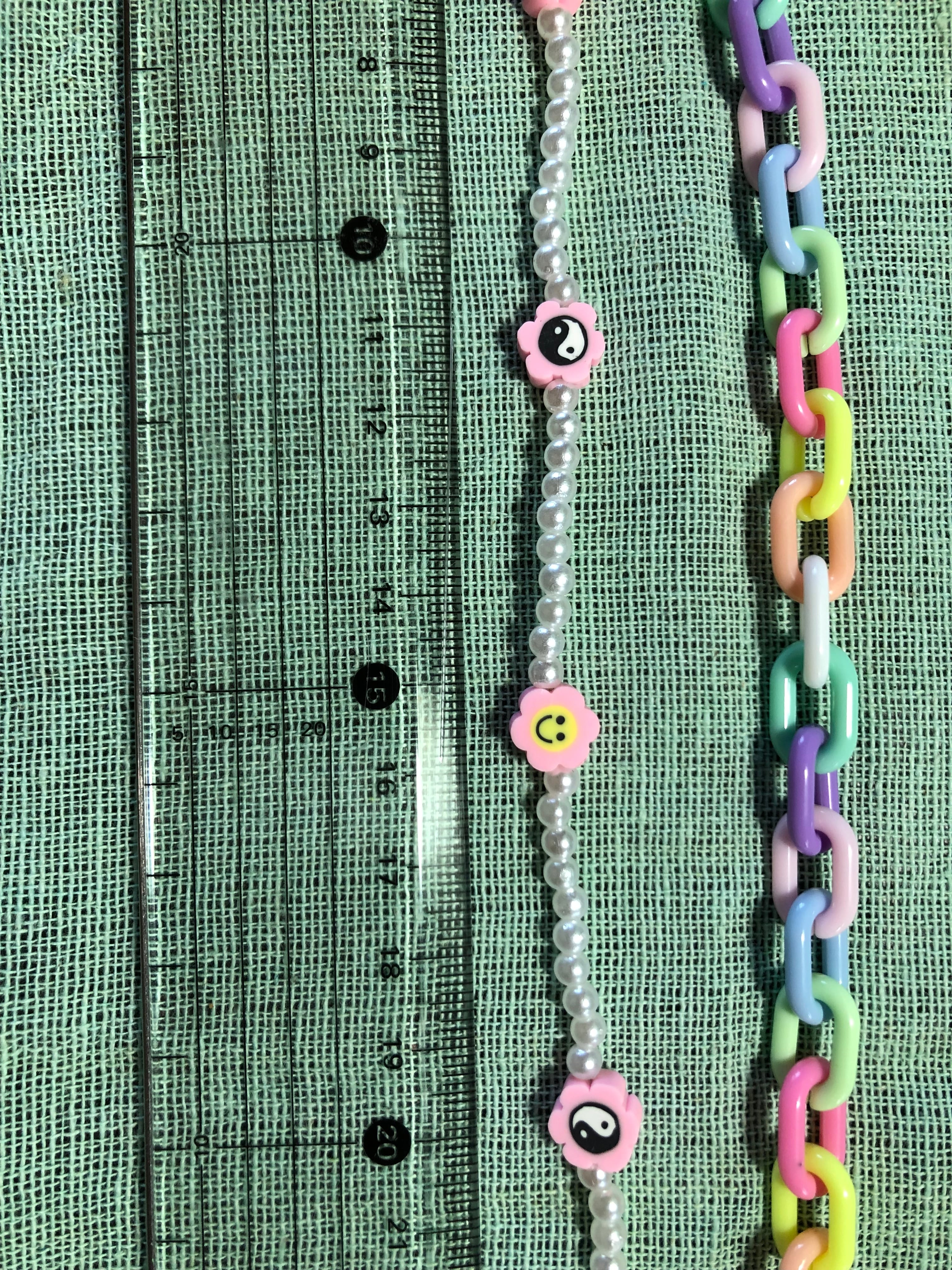 パールビーズにピンクスマイル、ピンク陰陽のパーツを付けキュート♡に仕上げました☆彡