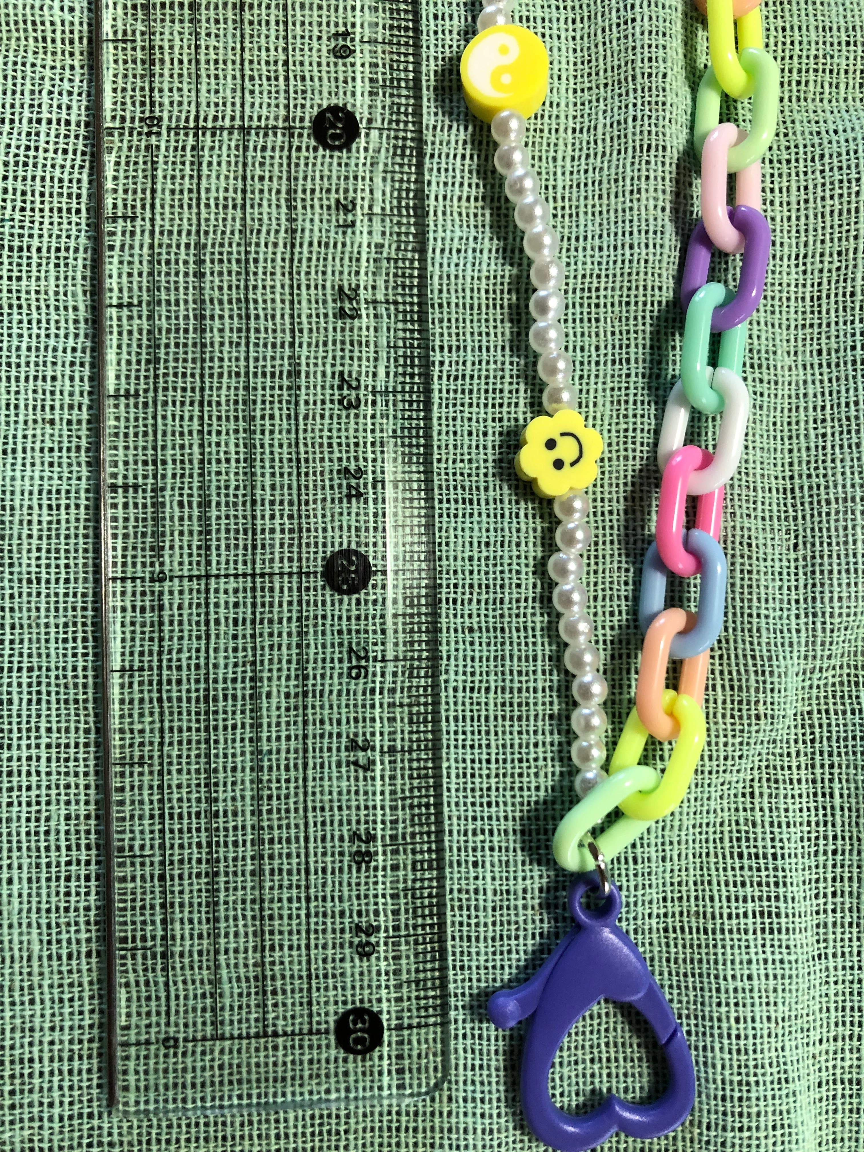 パールビーズにイエロースマイル、イエロー陰陽パーツを付け仕上げました☆彡