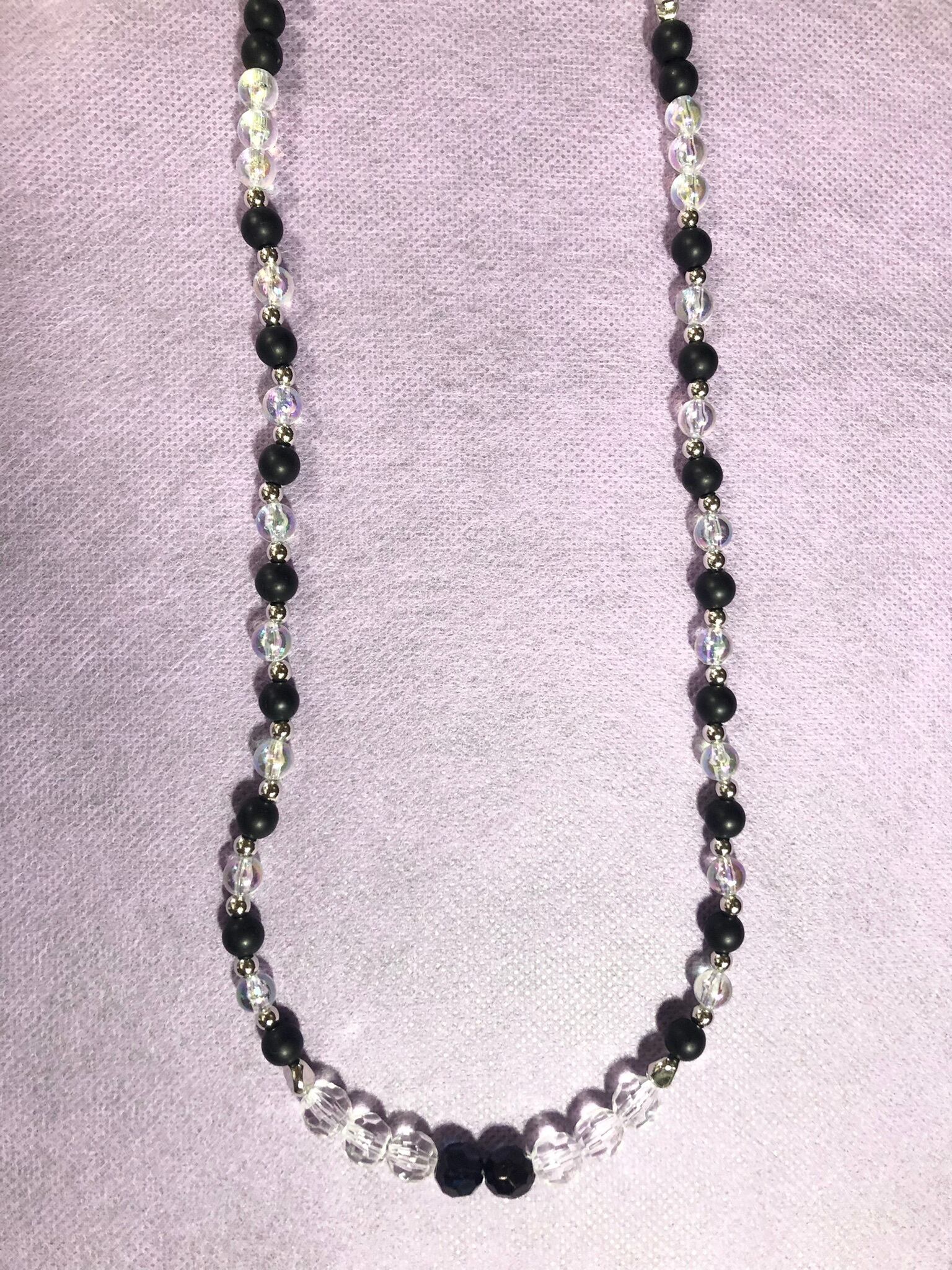 クリアビーズ、ブラックビーズ、パールビーズを組み合わせました!シックな雰囲気でカジュアルコーデは勿論、フォーマルコーデにもおすすめです♡