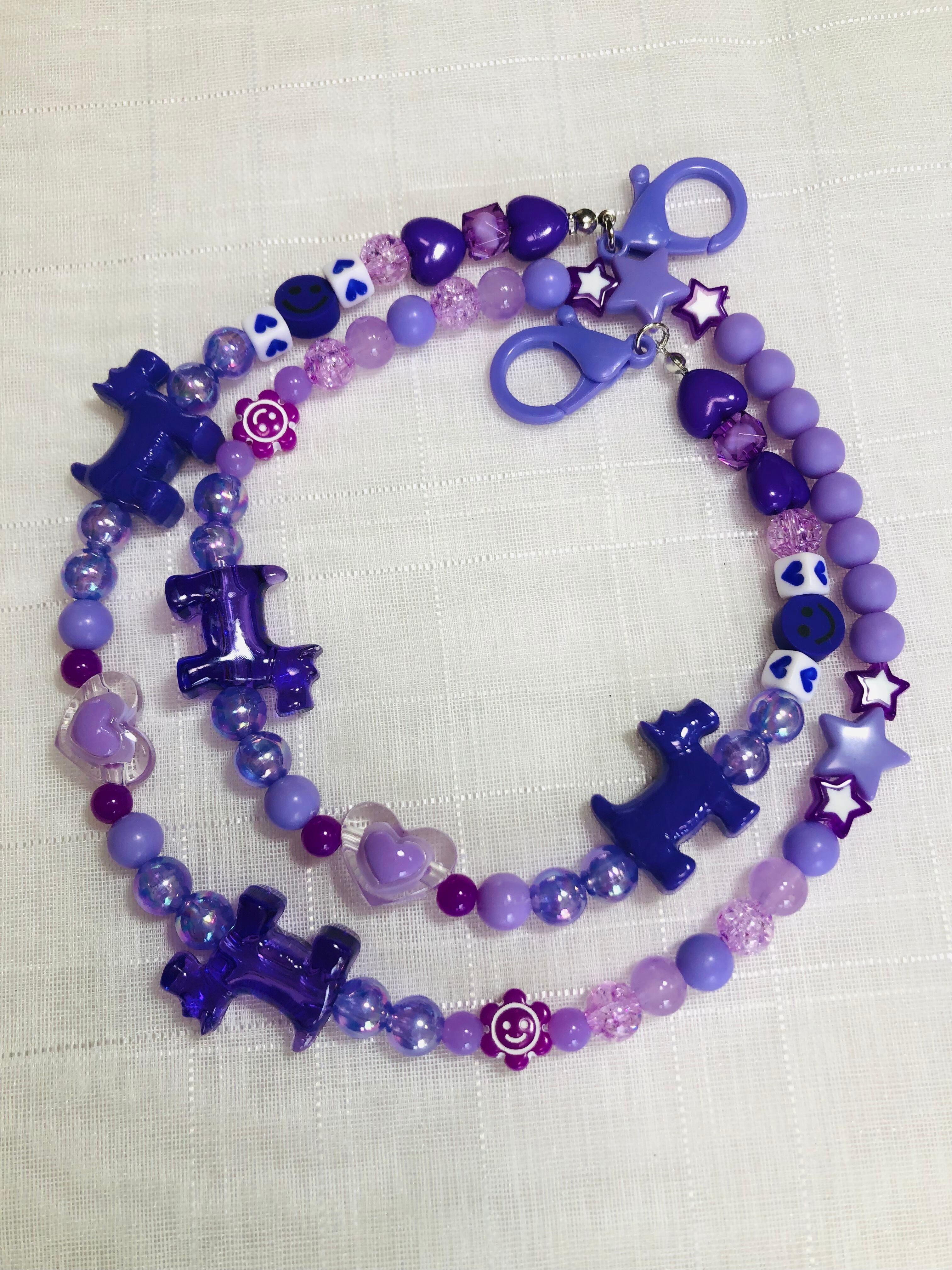 パープルビーズをメインに組み合わせ、直径2㎝の可愛いワンちゃんビーズが特徴なポップなマスクチェーンに仕上げました♡♪♪