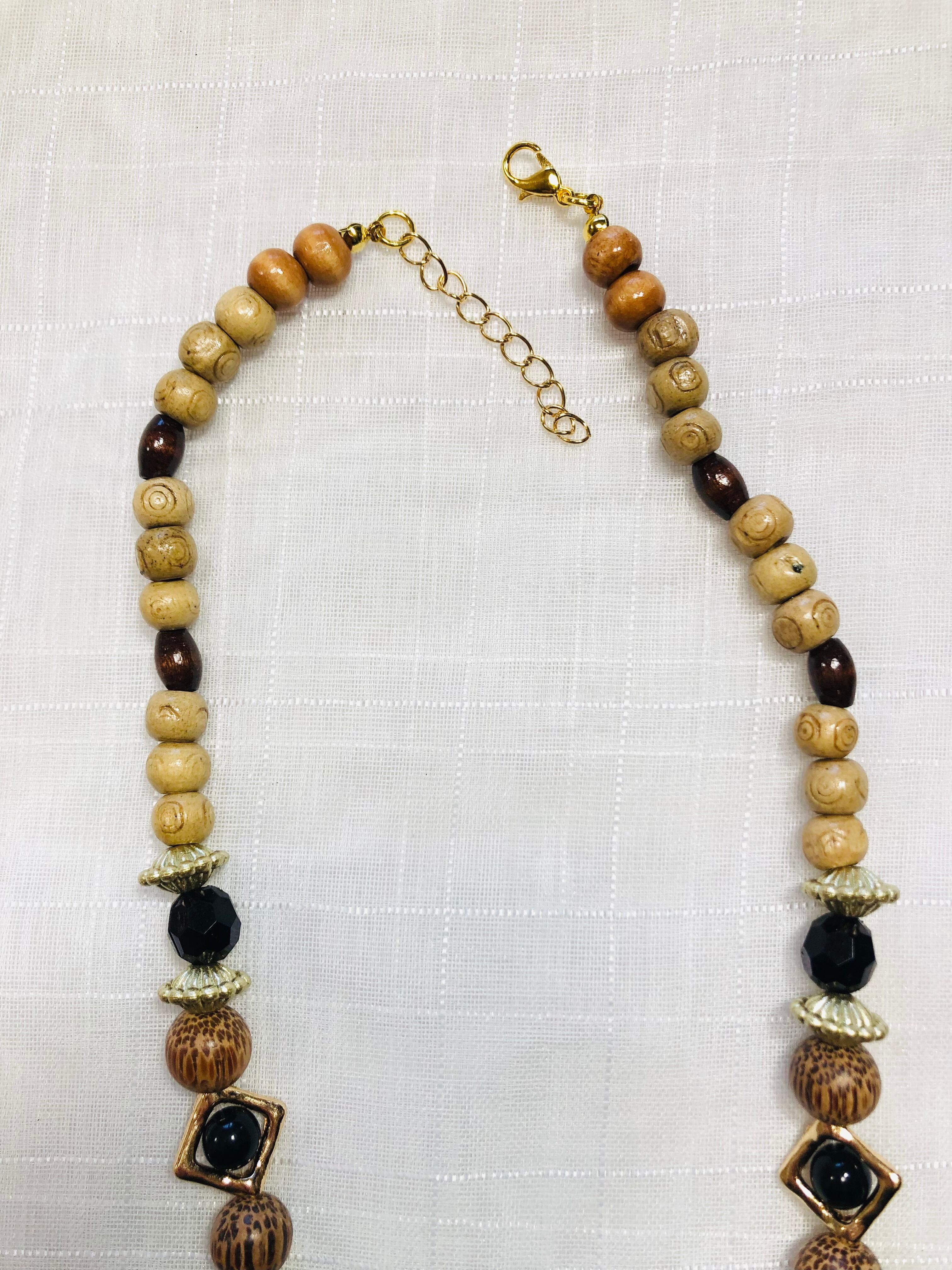 エスニック風のビーズにウッドビーズやゴールドパーツでゴージャス感をUPしました♡
