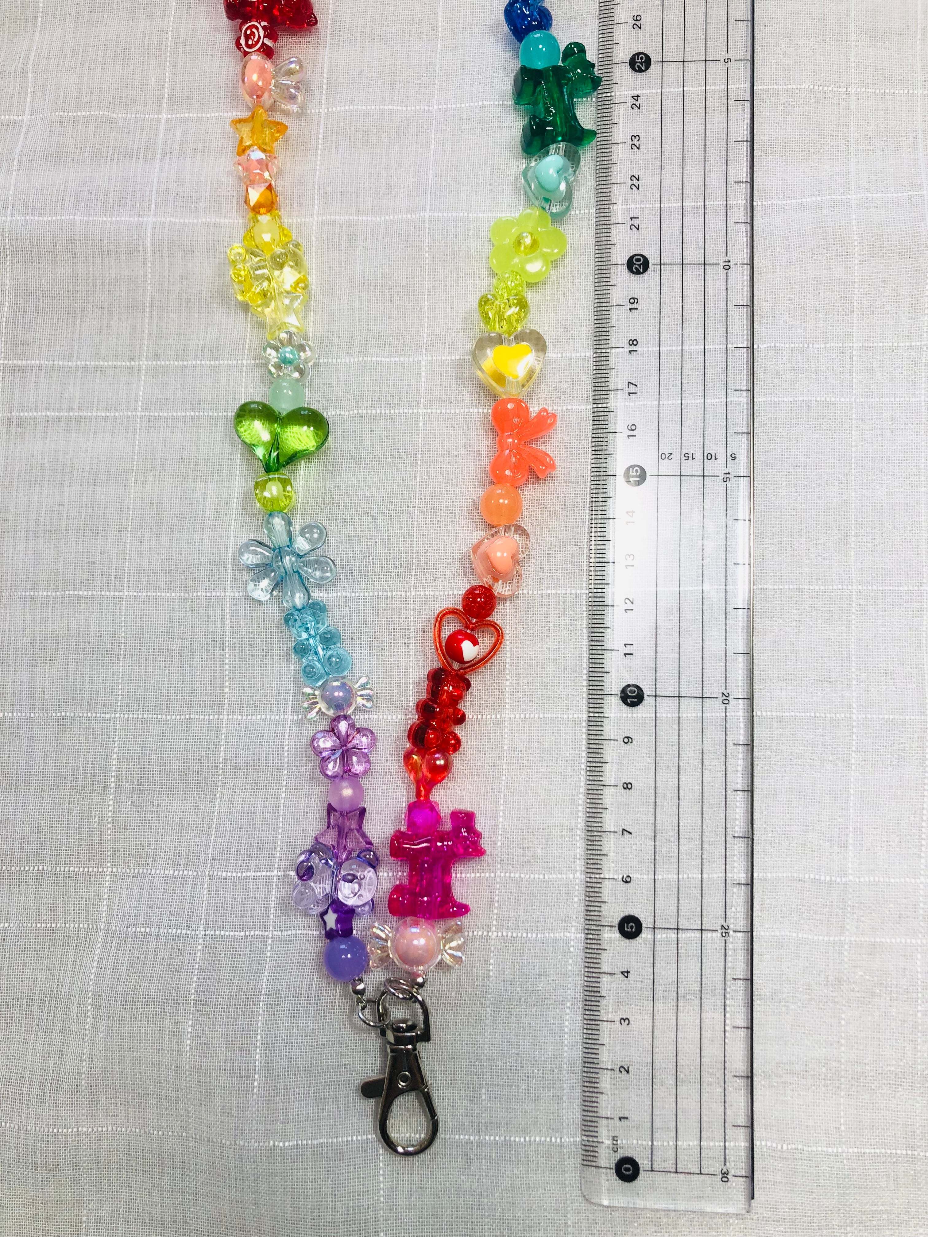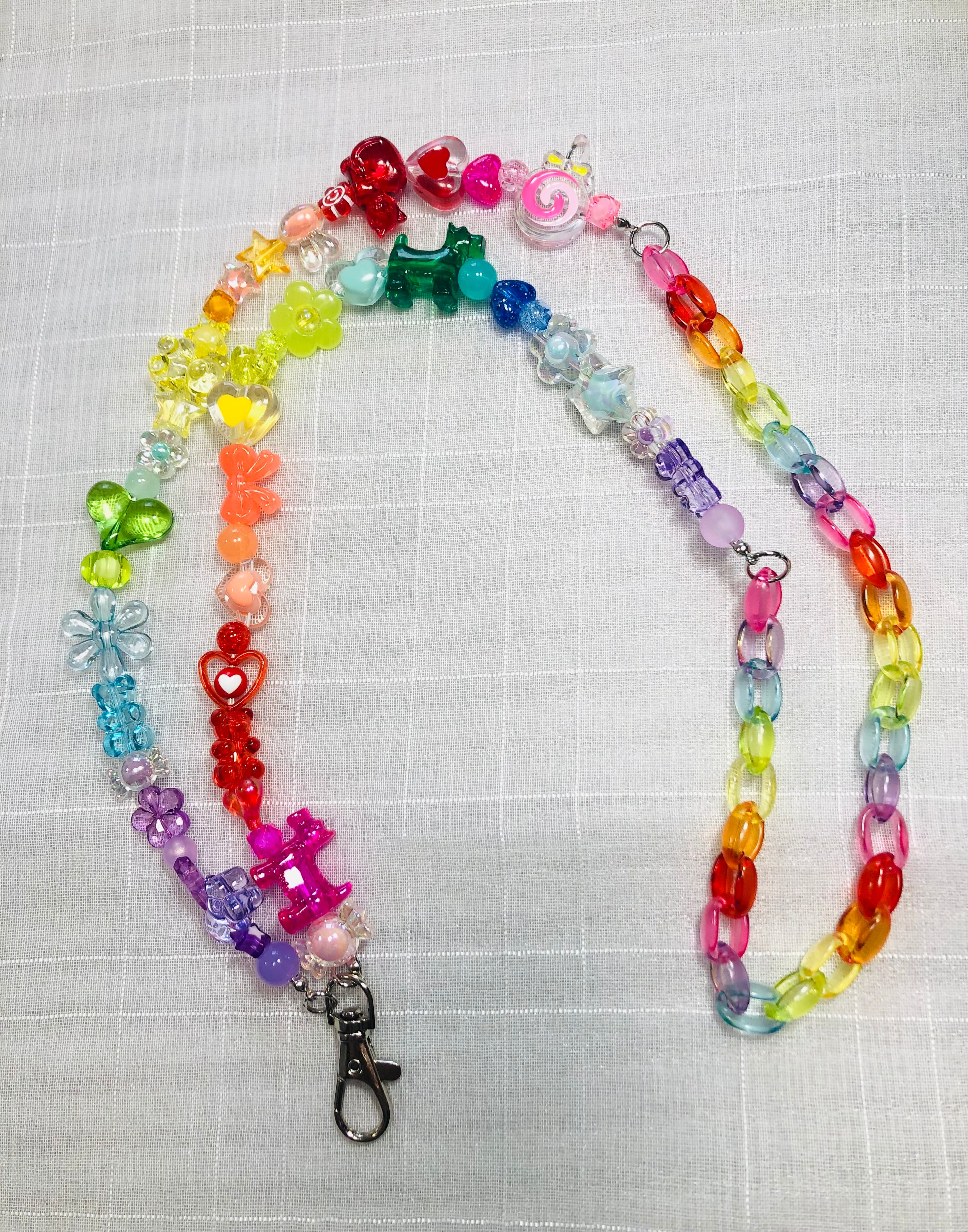 クリアでカラフルなレインボービーズとレインボーチェーンを組み合わせ、子供用肩掛けチェーンショルダーにしました♪♪